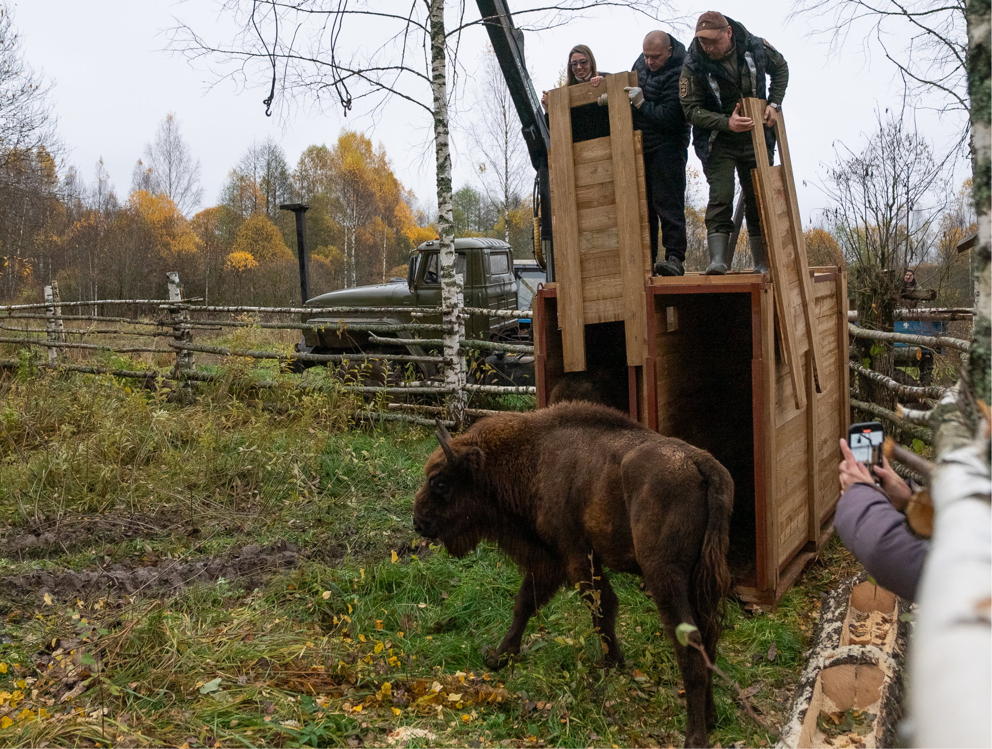Посмотрите, как зубры переезжают в новый дом